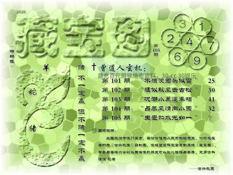 107期藏宝图:【更新中】 浅解:更新中 综合解肖:更新中 |